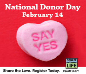 February 14th is celebrated as Donor Day. This day commemorates all organ, tissue, and eye donors in their generous gift or gifts and helps to raise awareness about the importance organ donors have in many people’s lives. Despite there being 95% of Americans who support being a donor, only 58% are actually registered as a donor. Donate Life America wants to help bridge this gap by encouraging awareness and by answering several frequently asked questions that may be hindering people from becoming donors.